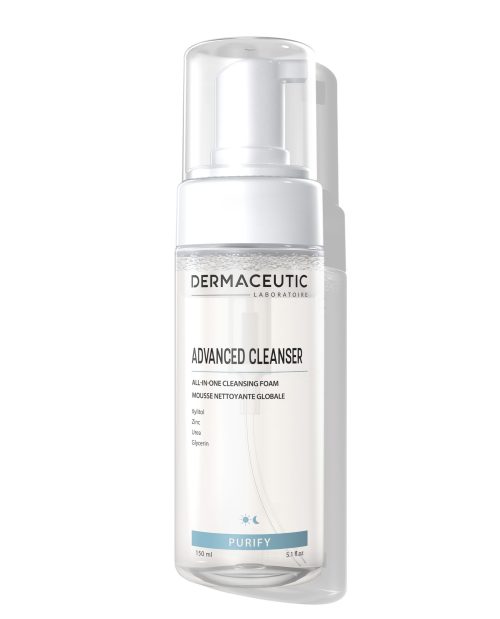 Advanced Cleanser je veliko več kot običajna čistilna pena. Je pena, ki vsebuje kar 4 napredne sestavine. Xylitol, ki deluje proti dehidraciji kože. Cink odstranjuje nečistoče, odstrani odvečno maščobo in ima proti mikrobno delovanje. Urea kožo izjemno navlaži, Glycerin pa, ki zagotavlja vlažilni in zaščitni film na koži. Advanced Cleanser učinkovito čisti povrhnji sloj kože, make up in odvečno maščobo. Primeren je tudi za čiščenje oči. Priporočamo ga za vse tipe kože, vključno za občutljive in dehidrirane kože.