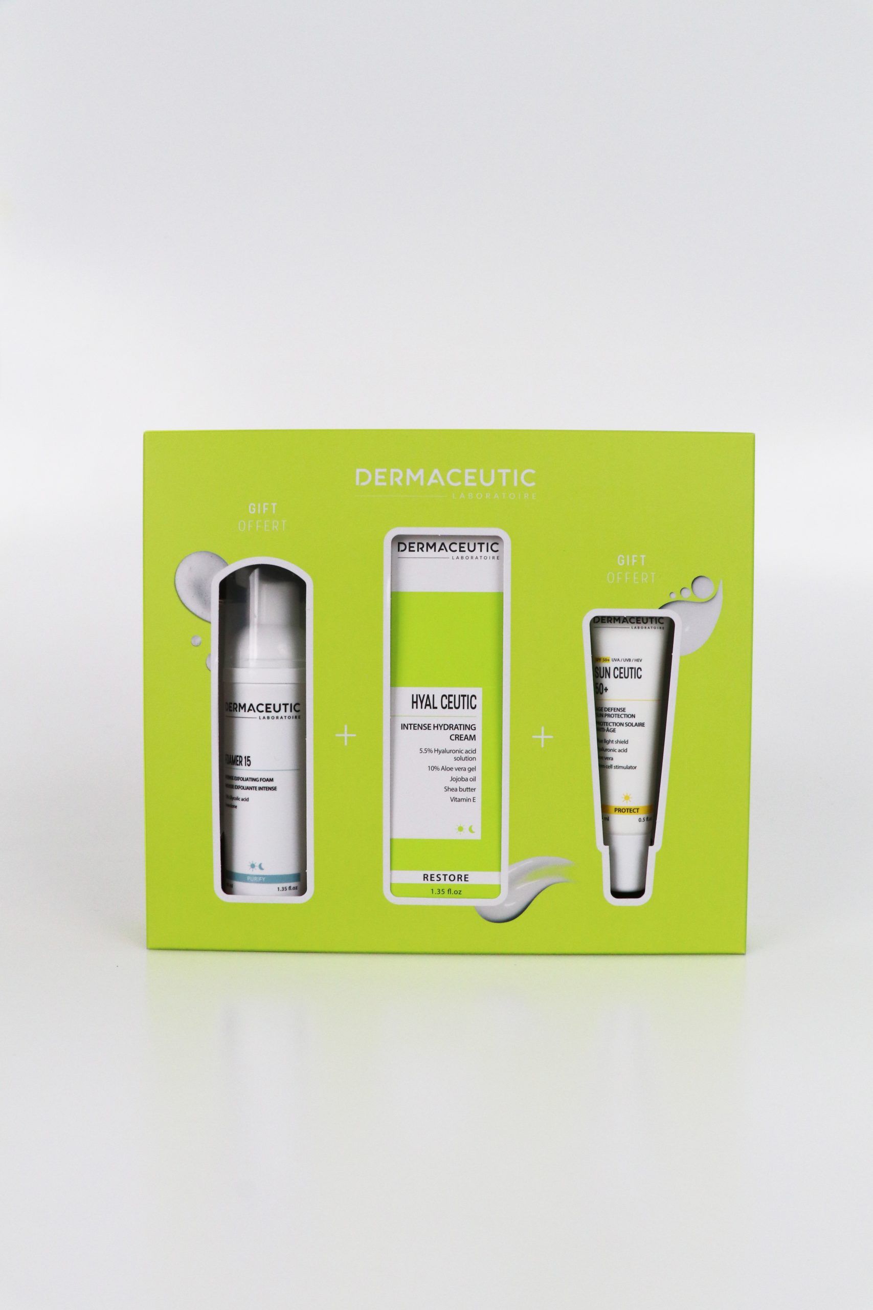 Sun Ceutic 50+ krema je dnevna krema, ki zagotavlja visoko zaščito kože pred UV žarki in hkrati deluje proti staranju kože. Zahvaljujoč 100% organskim filtrom UVA/UVB & HEV, kožo odlično ščiti pred opeklinami in fotostaranjem. Inovativni filter pred modro svetlobo (HEV), povezan s stimulatorjem matičnih celic in hialuronsko kislino pomaga preprečevati nastanek pigmnetacij. Hialuronska kislina pa ohranja kožo prožno in napeto. Primerna za vse tipe kože, tudi za nečisto in mastno kožo, saj je ne komedogena, ne povzroča aken in je lahke teksture. Kožo izjemno vlaži, ščiti pred epidermalno izgubo vode ter stimulira nastanek novega kolagena. Vodoodporna, nekomedogena, ne pušča beline na koži.
